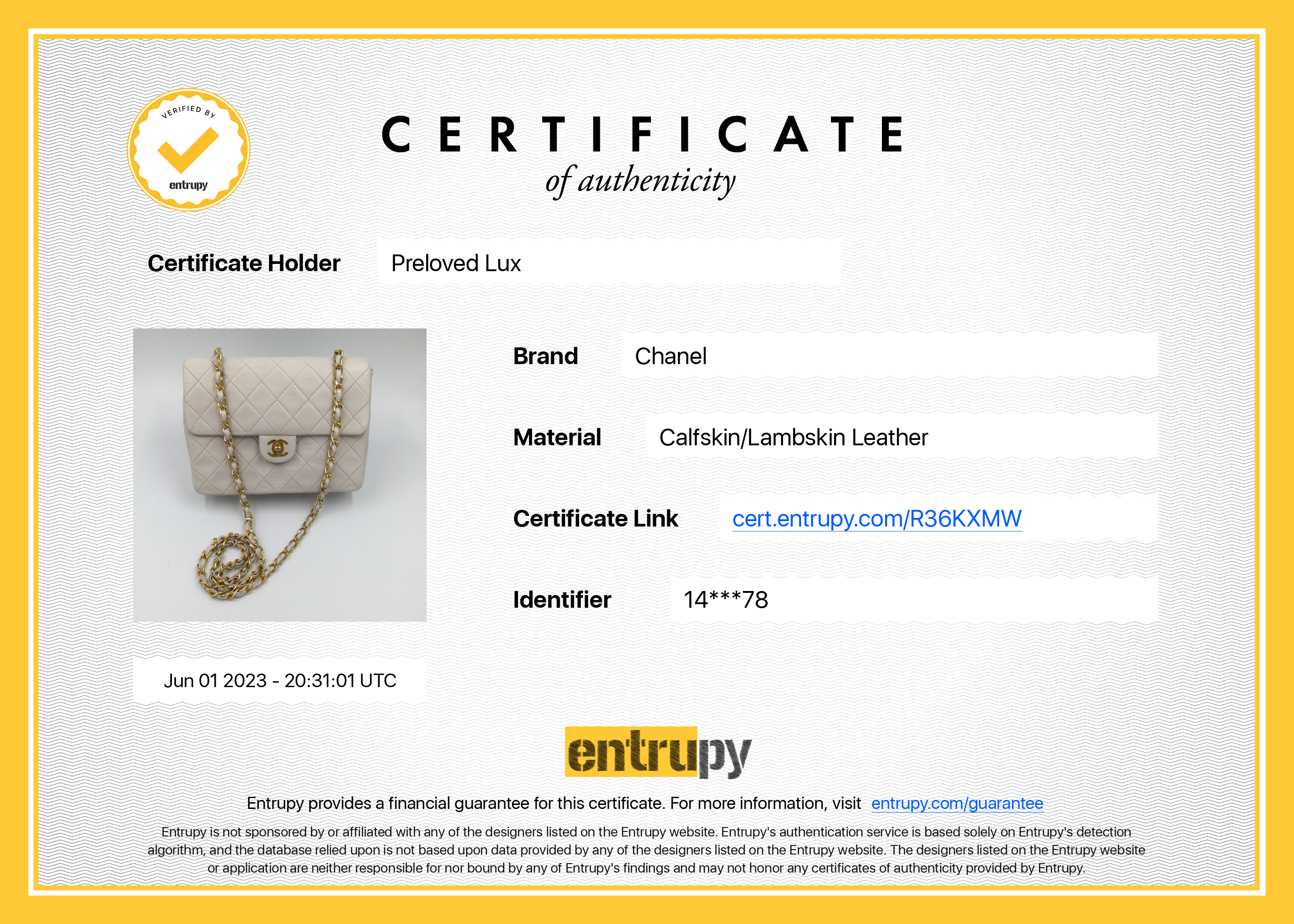 Serial seal (date code): 1497278 Year: 1989-1991 Authenticity card: Yes Box: No Dust Bag: Yes Authentication completed - Entrupy https://cert.entrupy.com/R36KXMW |